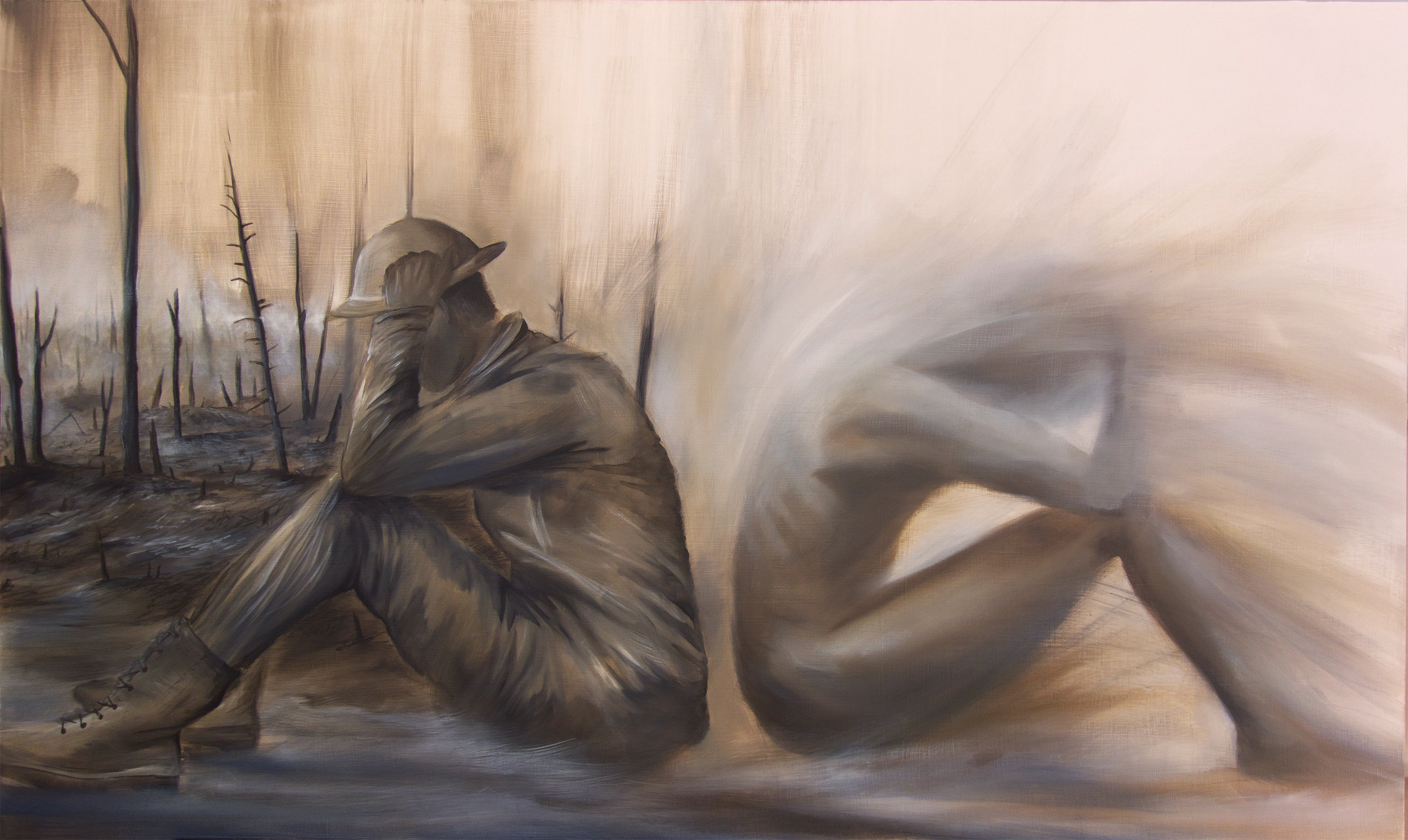 This piece deals with the psychological anguish that many soldiers have to endure during and after their deployment. Many people only think of the bodily sacrifice our soldiers make but many also suffer emotional and mental trauma that cannot be seen from the outside. This piece expresses a soldier losing the humanity that has lived in him for so long and the beginning of a long journey to recovering it once again.