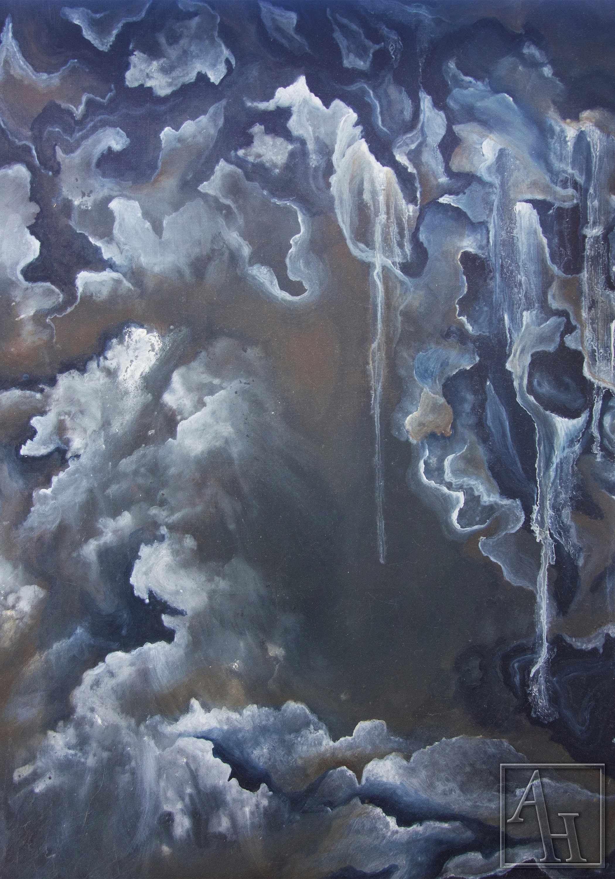 This piece was a focus on process. By diluting the paint and letting it pool and flow by its own will, it created its own composition. I simply added to this by darkening, adding textures and adding more paint.